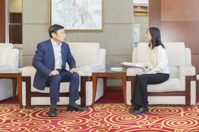 圖為毛新平院士接受《中國冶金報》記者專訪(特約通訊員 藍(lán)義高 攝影)